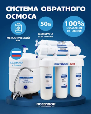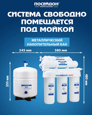 Бытовой водоочиститель серии «ПОСЕЙДОН-ОСМО ФИТ» предназначен для очистки водопроводной воды от вредных для здоровья примесей: механических (ржавчины, ила, песка и т.п.), растворенных (свободного хлора, хлорорганических соединений, тяжелых металлов, радиоактивных элементов, солей жесткости) и иных органических и неорганических веществ, бактерий и вирусов. Водоочиститель полностью решает проблему накипи. Устраняет неприятные запахи, улучшает вкус воды.