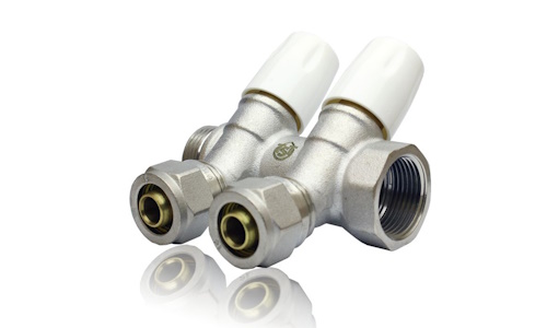 | Тип присоединения | Корпус внутренняя - наружная резьба 3/4 - отвод с шаровыми кранами и цангами для м/п трубы 16 мм |